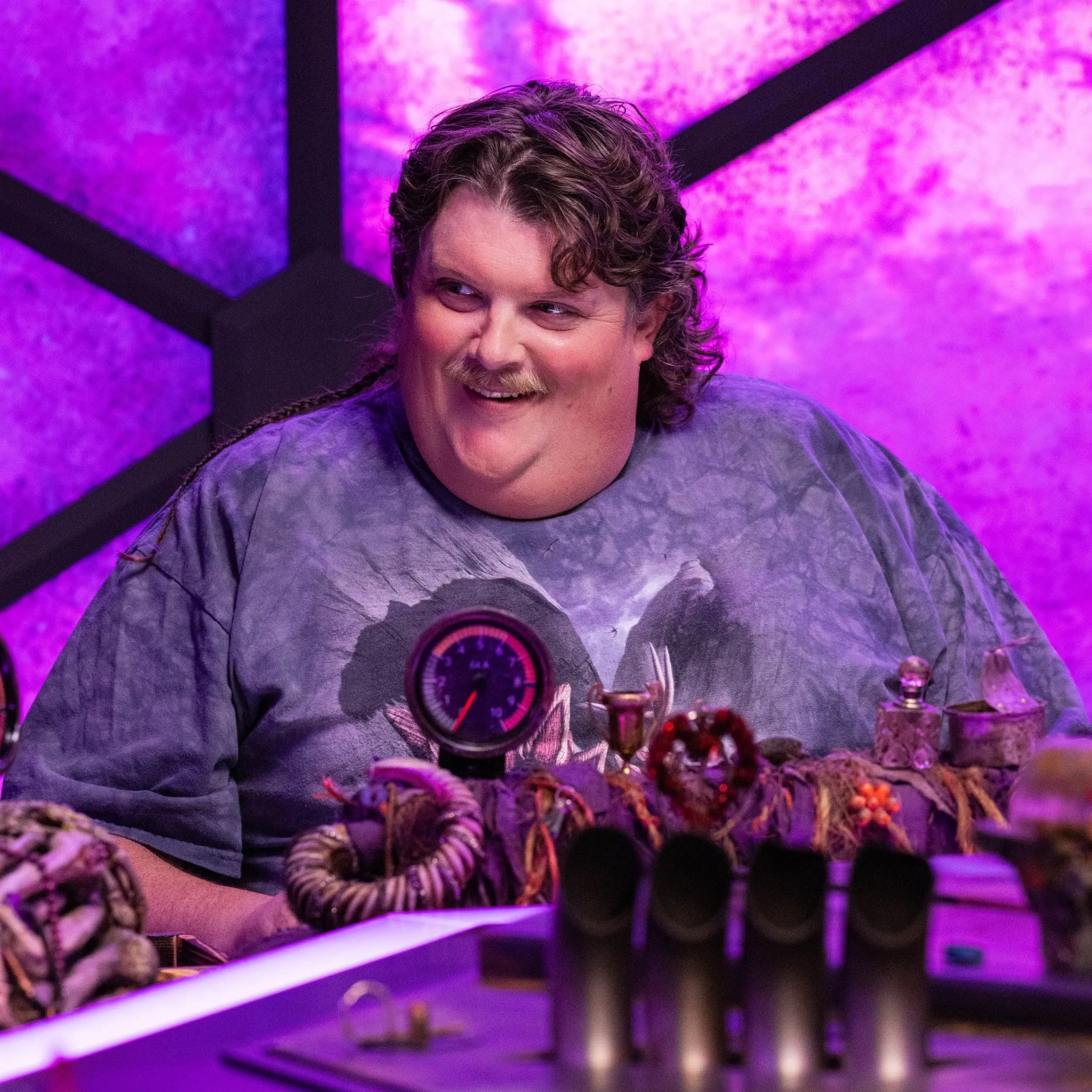 Михаэлис описала своего персонажа Хуги, который носит половину маски чумного доктора и имеет рост почти восемь футов, как «почти не человека», существующего между жизнью и смертью. «Они так стараются получить доступ к человечеству, но Хуги тоже большой и угрожающий — и немного устрашающий на вид». Несмотря на кризис идентичности, Хуги по-прежнему стремится всегда поступать правильно. Михаэлис повторил мнение Бехпурнии о том, что он чувствует себя в безопасности за столом, несмотря на то, что он новичок, и сказал, что работа с Маллиганом и за столом, полным близких друзей, полностью устранила страх неудачи. «На самом деле нет никакого способа потерпеть неудачу», — сказали они.