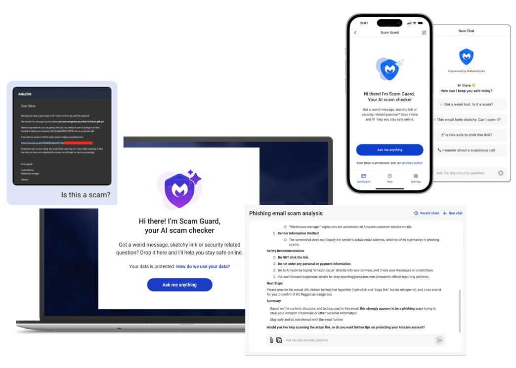 Общественность уже может получить доступ к немного лучшей версии этих возможностей сканирования. Инструмент Malwarebytes Scam Guard, доступный для пользователей Windows, Mac, iOS и Android, выполняет те же задачи, что и выше, но с дополнительным преимуществом, заключающимся в возможности напрямую проверять текстовые сообщения на устройствах iOS на предмет мошенничества и фишинга. (Версия с веб-интерфейсом появится позже в этом году.) А бесплатное расширение браузера Malwarebytes, Browser Guard, помогает защитить компьютеры от таких угроз, как фишинговые сайты, информационные кражи и трекеры.