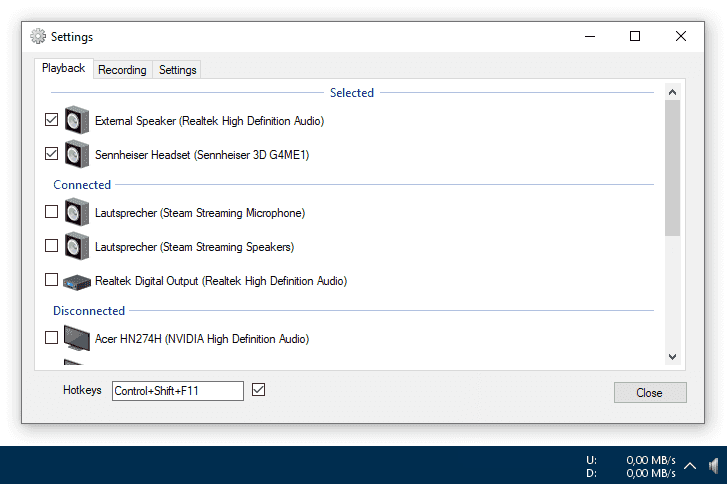 С SoundSwitch вы просто нажимаете горячую клавишу — например, Ctrl+Alt+F1 — и она переключается на выбранное вами устройство. Вы можете настроить различные горячие клавиши для всего: от выходов, таких как динамики и наушники, до входов, таких как микрофоны.